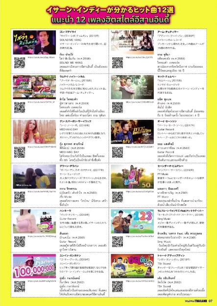 ②特集『イサーン音楽の今』モーラム楽団とは/5つのモーラム主要楽団/イサーン・インディーとは/イサーン・インディーが分かるヒット曲/ロッヘーとは/ロッヘー関連のFaebookページ/イサーン・ニューウエイブ/イサーン音楽が堪能できるアルバム20選/ラムヤイ・ハイトーンカム・インタビュー/ラムヤイ・ハイトーンカムの代表曲