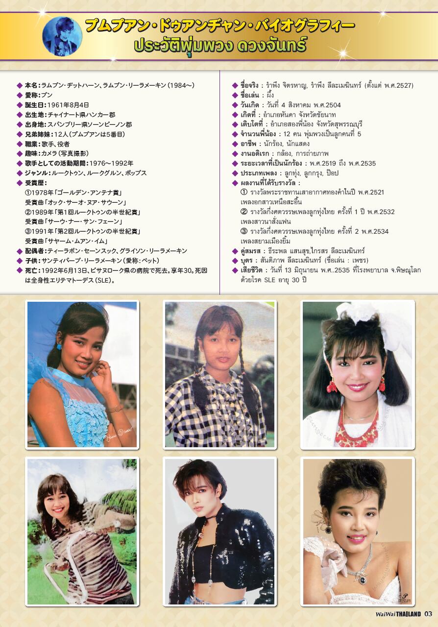 ②特集『伝説の歌姫』プムプアン・ドゥアンヂャン 前編/プムプアンの生涯/プムプアンと5人のキーパーソンプムプアンと5人のキーパーソン/プムプアンディスコグラフィー/プムプアンミュージアムインタビュー